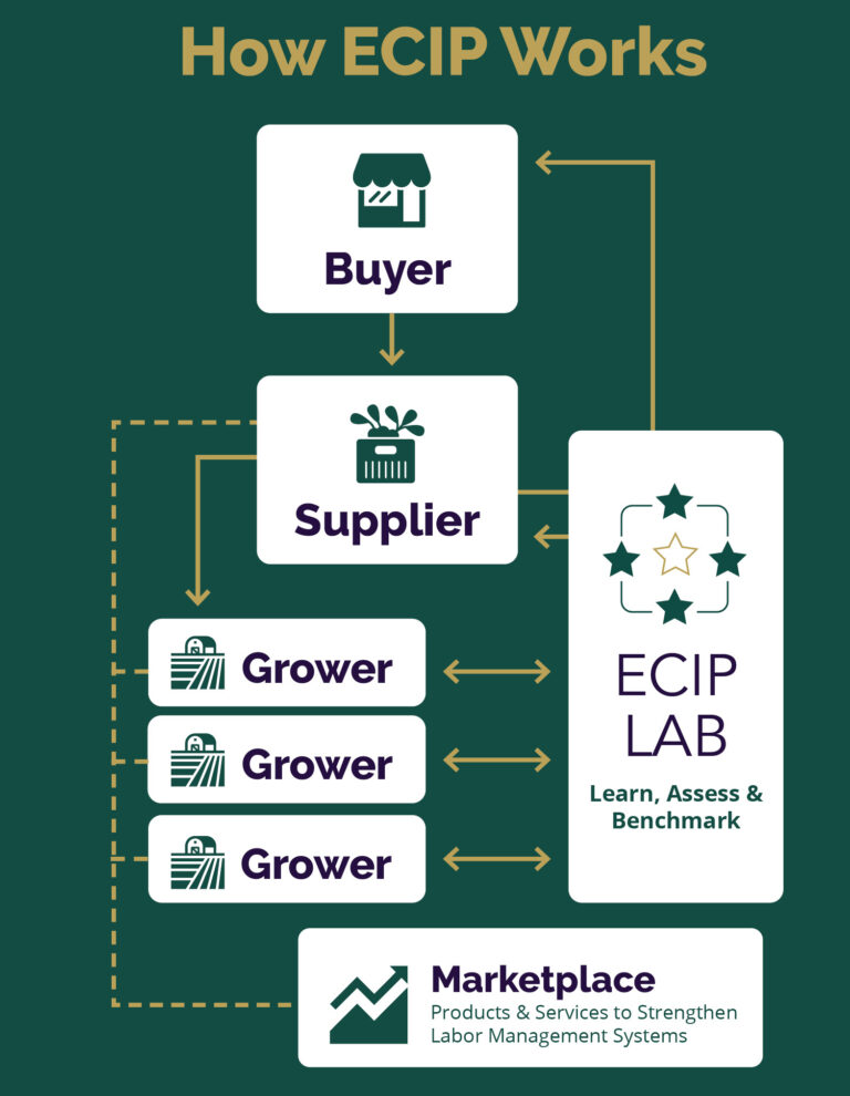Growers access guidance and resources to support a self-assessment of their labor management systems and to guide their capacity-building. Efforts to understand and align with the Ethical Charter through ECIP LAB are measured and communicated through an engagement profile.